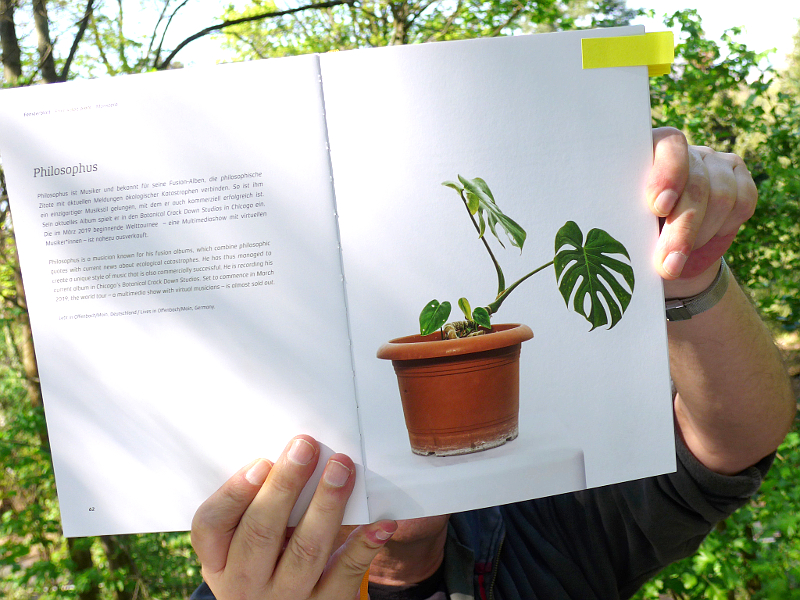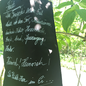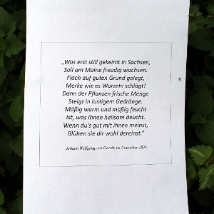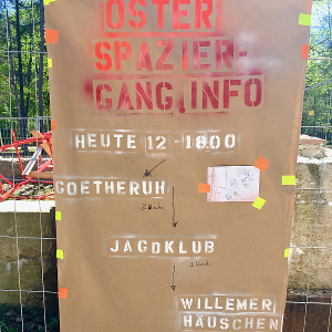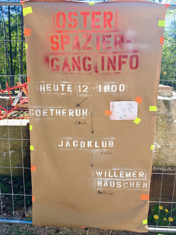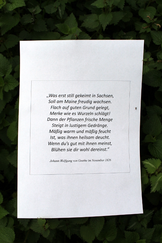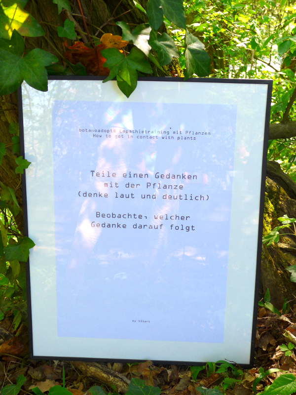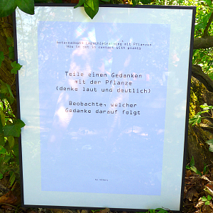 >> "Auf Goethes Spuren": FAZ Ankündigung zum Frankfurter Osterspaziergang 2019 von Christoph Schütte >> "Was einst still gekeimt in Sachsen": FAZ Nachlese zum Frankfurter Osterspaziergang 2019 von Christoph Schütte Stationen Goetheruh: 431art – botanoadopt und das Innenleben von Pflanzen: Buchpräsentation, Lesung und Lehrpfad; Empathietraining mit Pflanzen