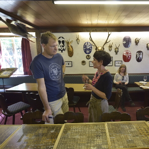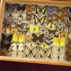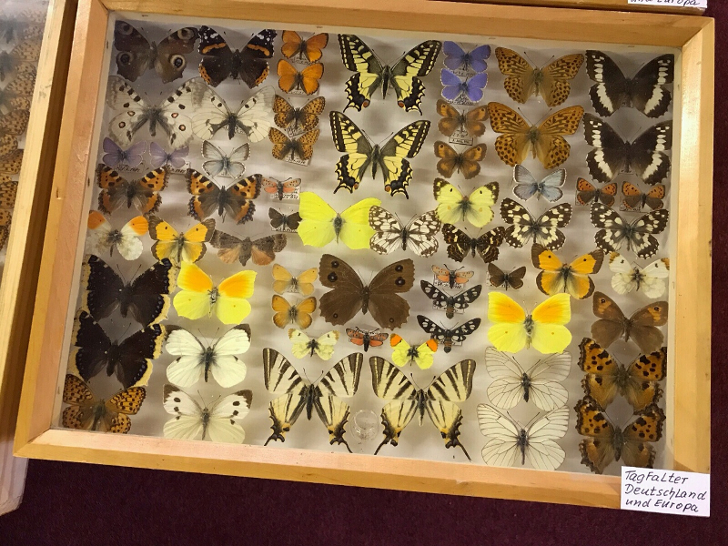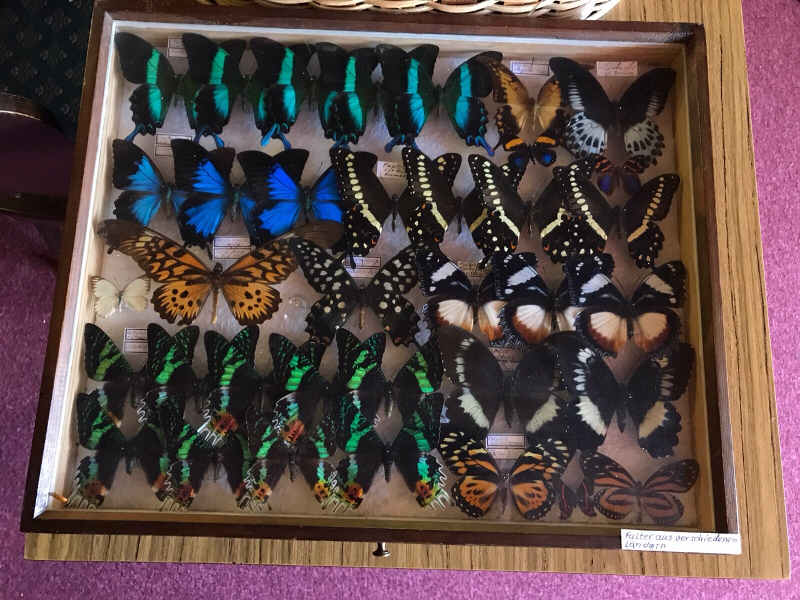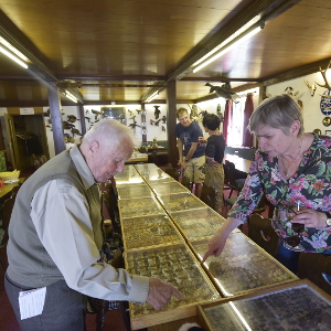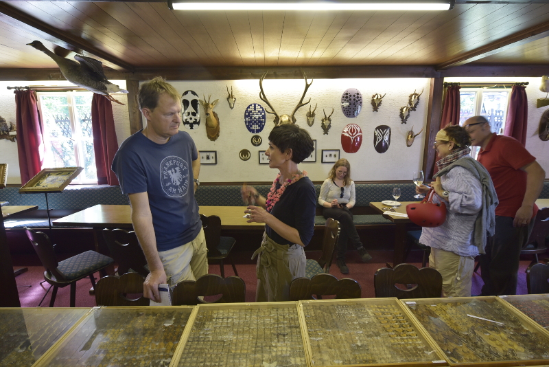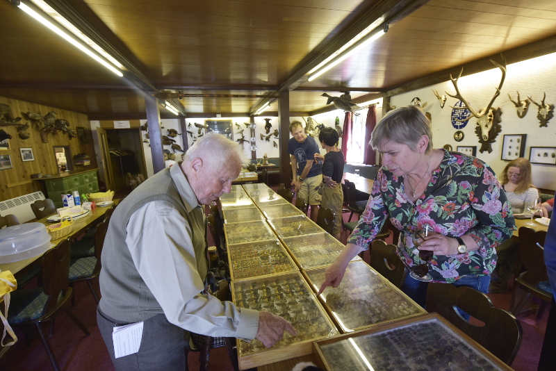 Sachsenhäuser Jagdklub: Paul Dondas Käfer in der naturhistorischen Jagdklub-Sammlung und Herr Jung, Vereinsmitglied und Schmetterlingsexperte
