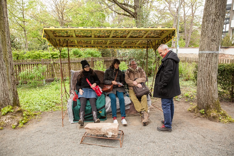 „Vom Eise befreit“ „Vom Eise befreit“ fand die erste Neuauflage des Osterspaziergangs am 16.04.2017 statt. Entlang des 11 km langen, ausgezeichneten Kulturwanderweges lässt es sich entspannt auf Goethes Spuren wandeln. Die Szene „Vor dem Tor“ aus Goethes Werk Faust I soll um das Jahr 1774 durch einen Spaziergang am Ostersonntag vom Sachsenhäuser Mühlberg zur Gerbermühle inspiriert worden sein. Auf einem von der Frankfurter Kuratorin Annette Gloser zusammengestellten Parcours, bereicherten bildende Künstlerinnen und Künstler die historischen Stationen um die Gerbermühle und den Wasserhof, die Schutzhütte W3 im Stadtwald Oberrad, Goetheruh und das Willemer Häuschen mit Interventionen zum Thema. An der idyllischen Trinkhalle am Reitstall wurde der Wanderer von einem Experten für Wasserhäuschen erwartet und vor den Ruinen des legendären Wasserhofes fand der von Dr. Robert Bock inszenierte Wettbewerb „Hier bin ich Mensch, hier darf ichs sein“ statt. (Weiter geht's im Archiv!)